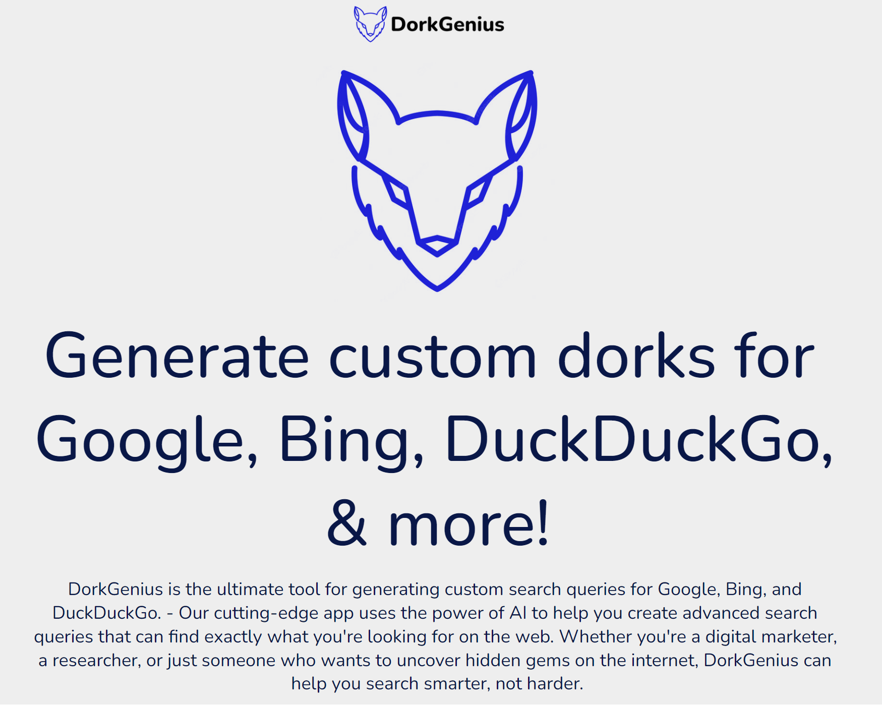 Business Summary: is a web-based tool that helps businesses conduct advanced searches on the internet. Our tool is designed to help businesses generate complex search strings, which can be used to find sensitive information that is not easily accessible using regular search engines. is a freemium tool, which means that it is free to use, but users can pay for additional features and functionality. Our target audience is business owners worldwide who are looking for a more efficient way to conduct online research.